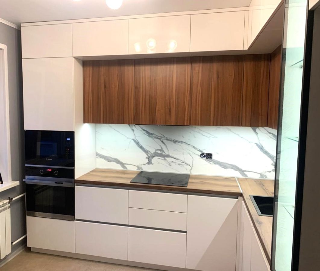 Белая кухня из окрашенного МДФ с фасадами из ЛДСП: гармония стиля и практичности