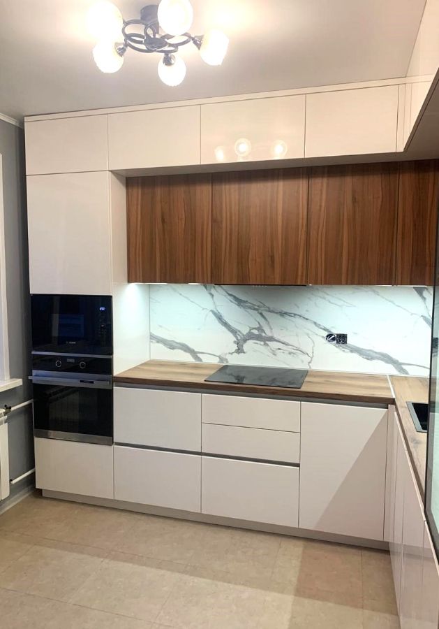 Белая встраиваемая кухня остаётся бессменным фаворитом интерьерного дизайна — она придаёт пространству лёгкость, визуально расширяет его и служит безупречной основой для любых стилевых решений. Особую глубину образу придаёт комбинация фасадов из окрашенного МДФ и ЛДСП с имитацией дерева: такое сочетание объединяет современные технологии и природную эстетику.