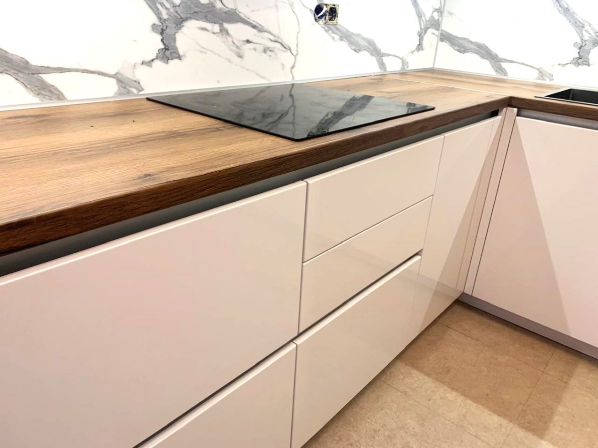 Белая кухня со столешницей из дерева: на что обратить внимание