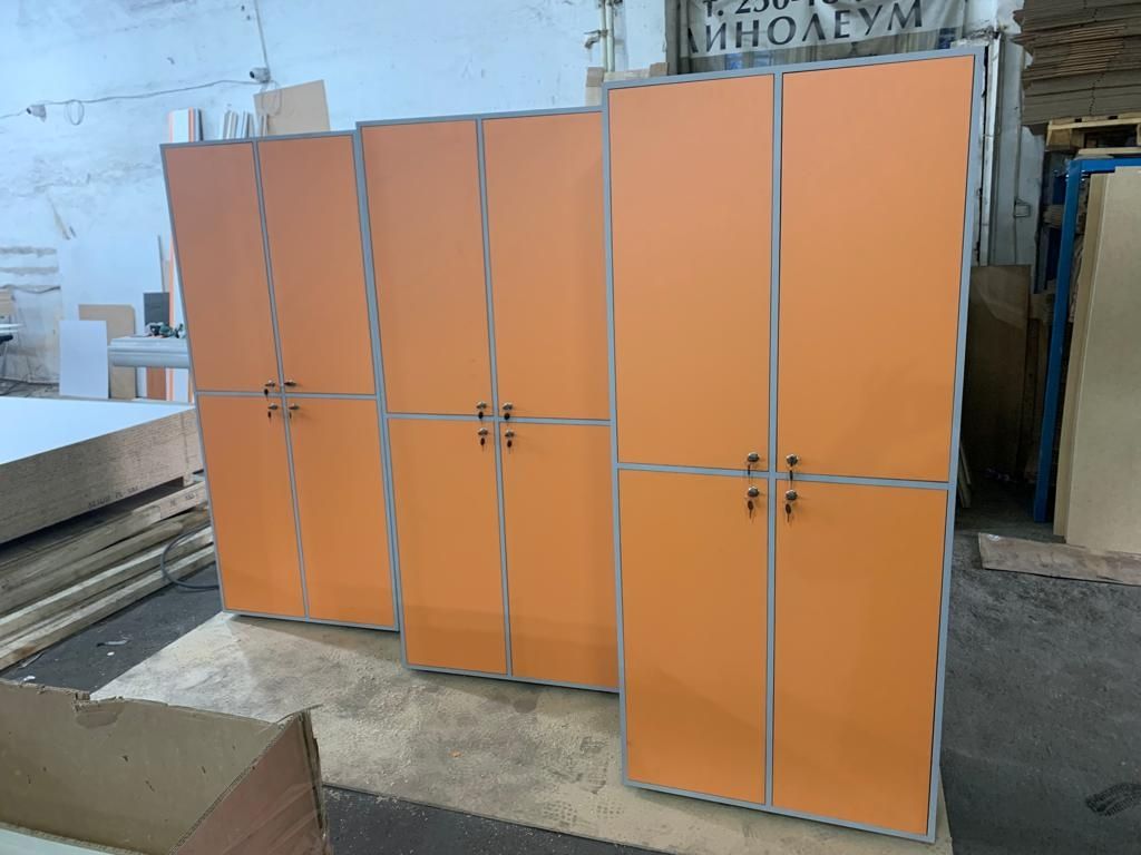 Яркие акценты в фитнес-пространстве: оранжевые кабинки для раздевалок