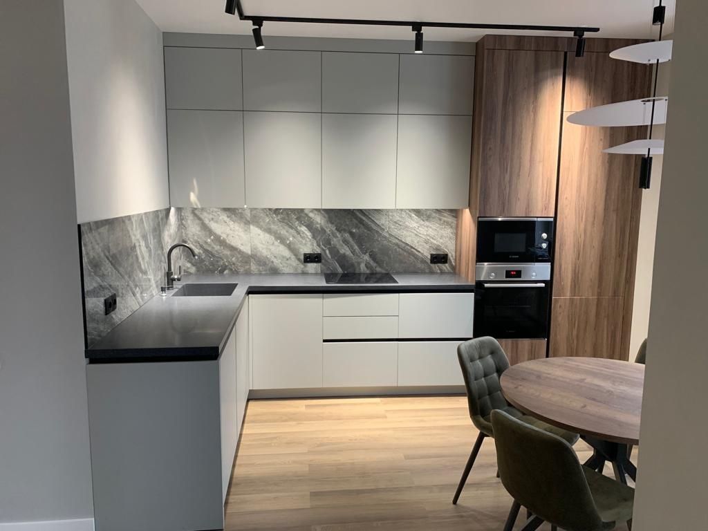 Серо-деревянная кухня с фасадами из МДФ в пленке – это идеальное сочетание практичности и эстетики. Такое решение позволяет создать уютное и функциональное пространство, которое будет радовать глаз долгие годы.