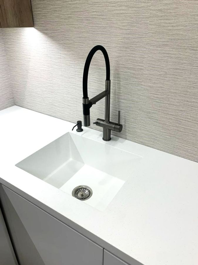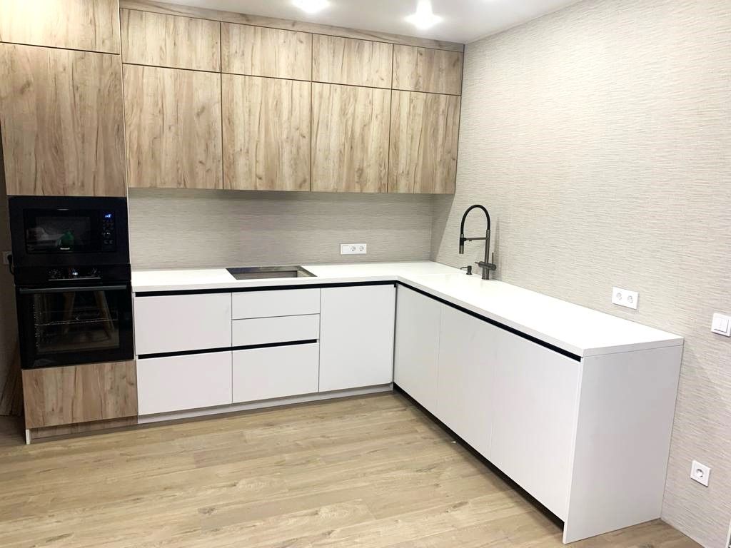 Если вы цените практичность, готовы инвестировать в качество и хотите кухню, которая останется актуальной через годы, — этот вариант заслуживает внимания. Белые фасады добавят света и воздушности, а каменная столешница подчеркнёт статусность и надёжность вашего выбора.