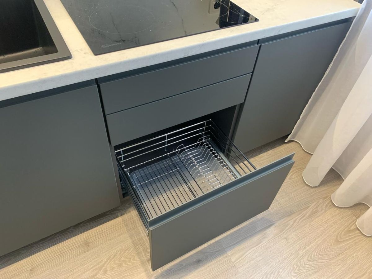 Серая кухня — выбор тех, кто ценит сдержанную роскошь, универсальность и долговечность стиля. Фасады из МДФ, окрашенные профессиональной краской, придают интерьеру особую глубину и тактильную привлекательность, а широкая палитра серых оттенков позволяет создать именно ту атмосферу, которую вы задумали.