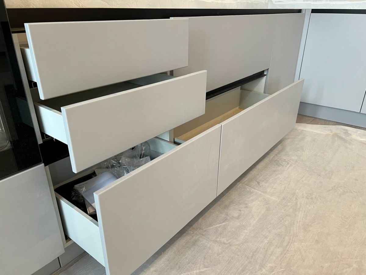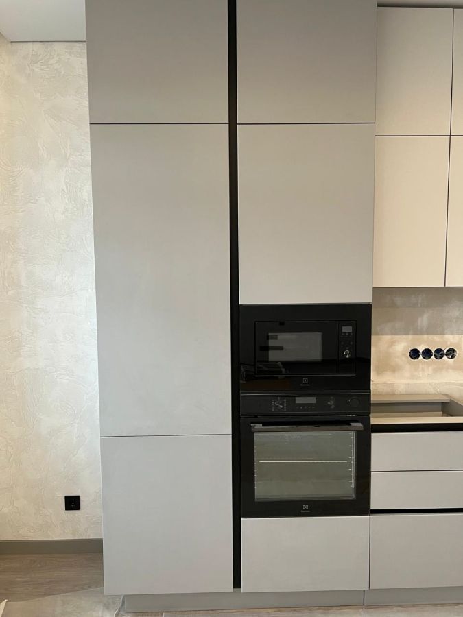 Современный минимализм — строгие линии, скрытые ручки, монохромная гамма.