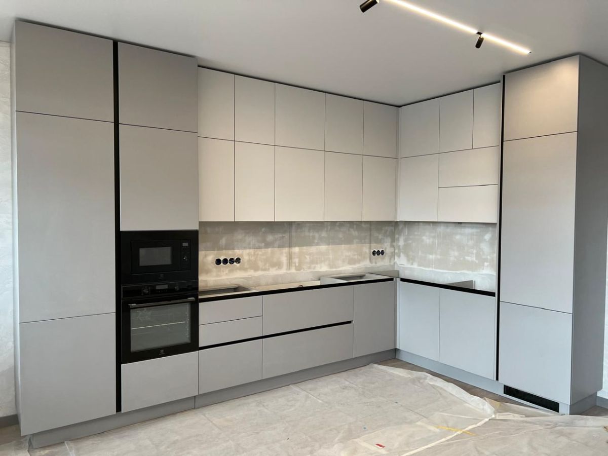 Ищете кухню, которая сочетает лаконичность форм, практичность и актуальный дизайн? Серая угловая кухня с фасадами из окрашенного МДФ — идеальное решение для тех, кто ценит сдержанную элегантность и продуманную организацию пространства.