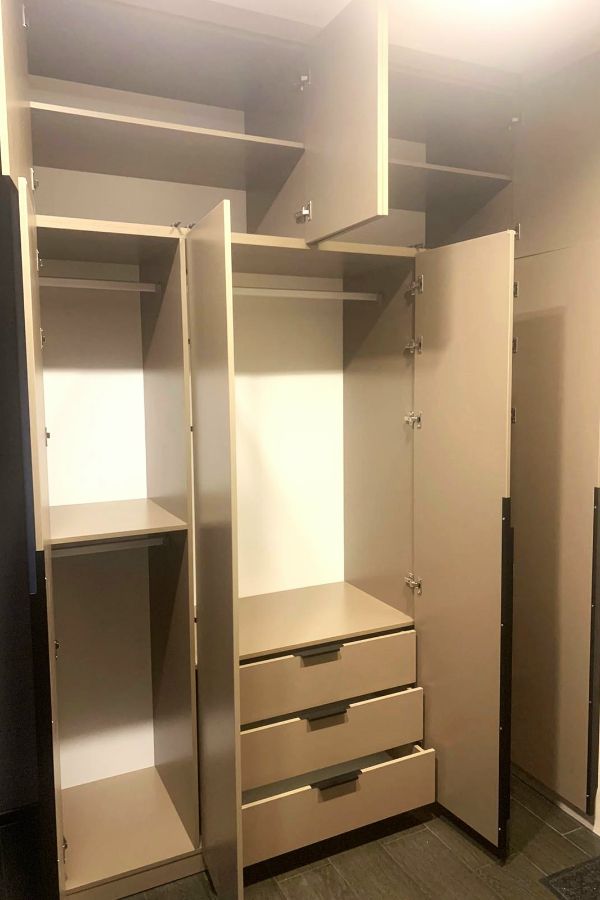 Внутреннее наполнение. Продумайте количество полок, штанг, ящиков и их расположение.