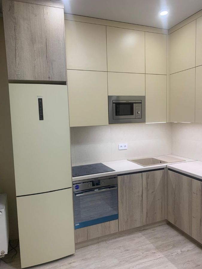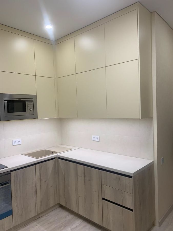 Угловая бежевая кухня с фасадами ЛДСП Egger — это продуманное решение для тех, кто ценит: