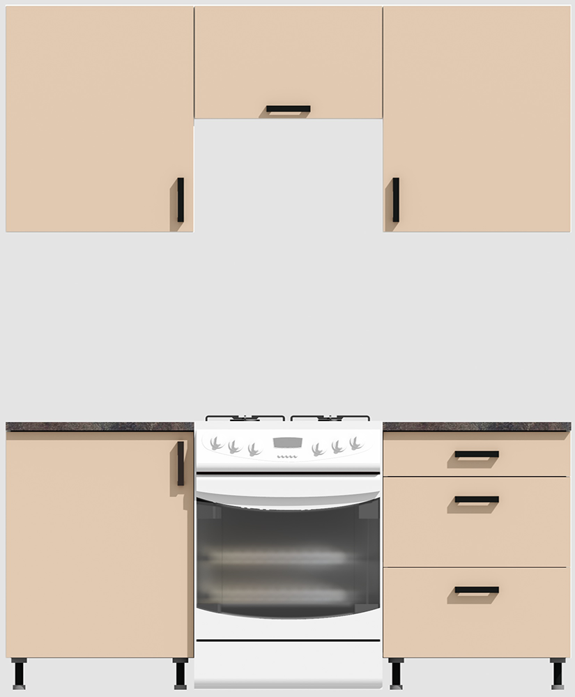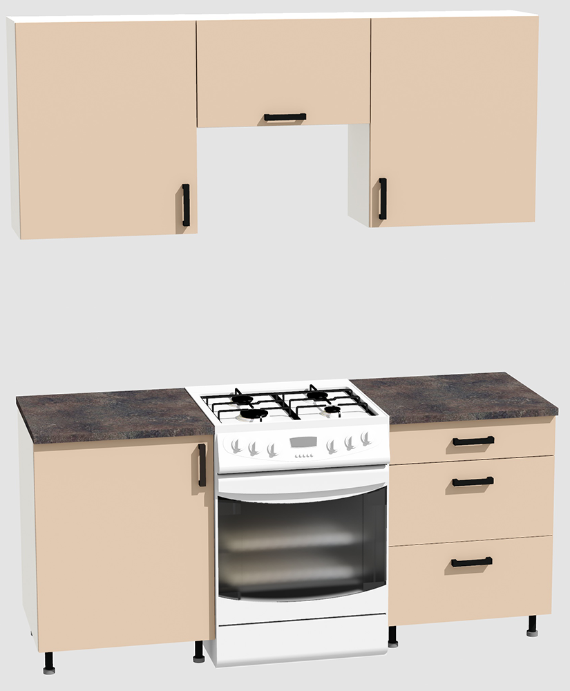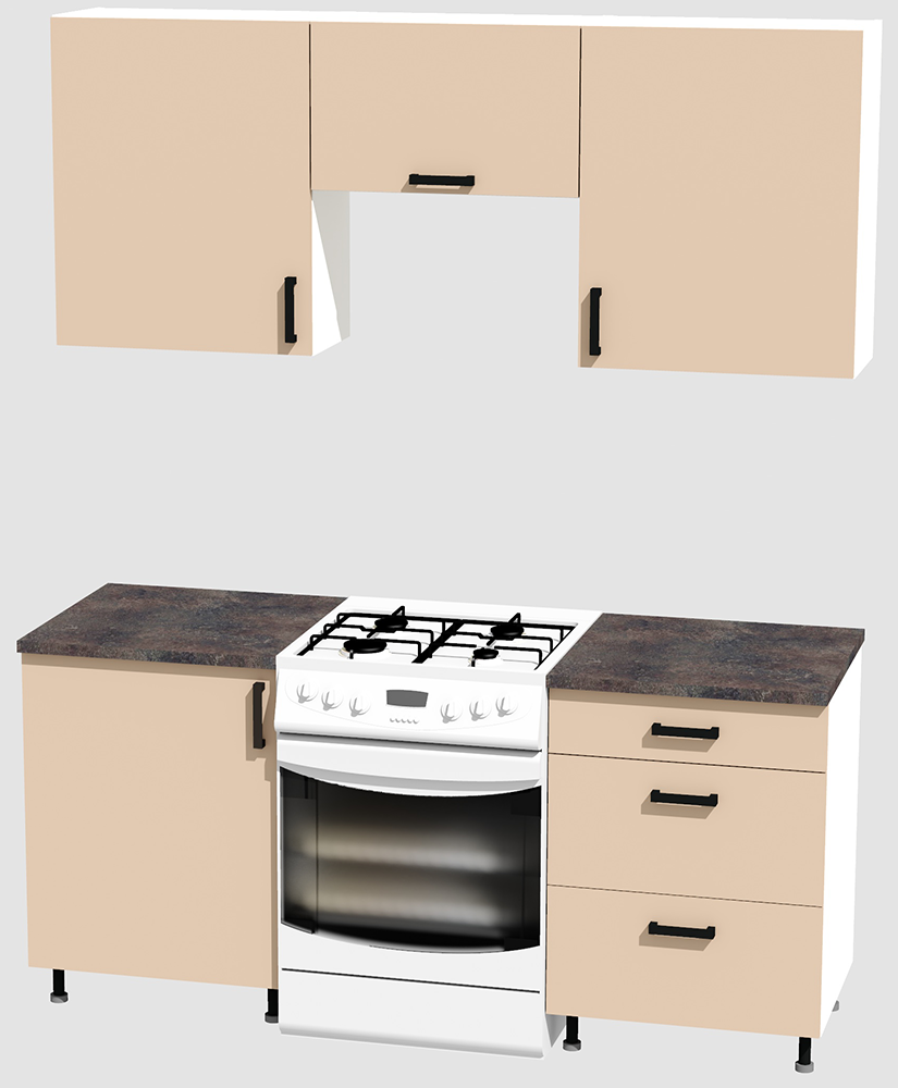 КорпусЛДСП 16 мм. Цвет БелыйФасадыЛДСПЦвет верхних фасадовФон бежевыйЦвет нижних фасадовФон бежевыйРучкиЧерныеТолщина столешницы26 мм.ПетлиБез доводчиковНаправляющие ящиковШариковые без доводчиковЦвет столешницыСерый камень