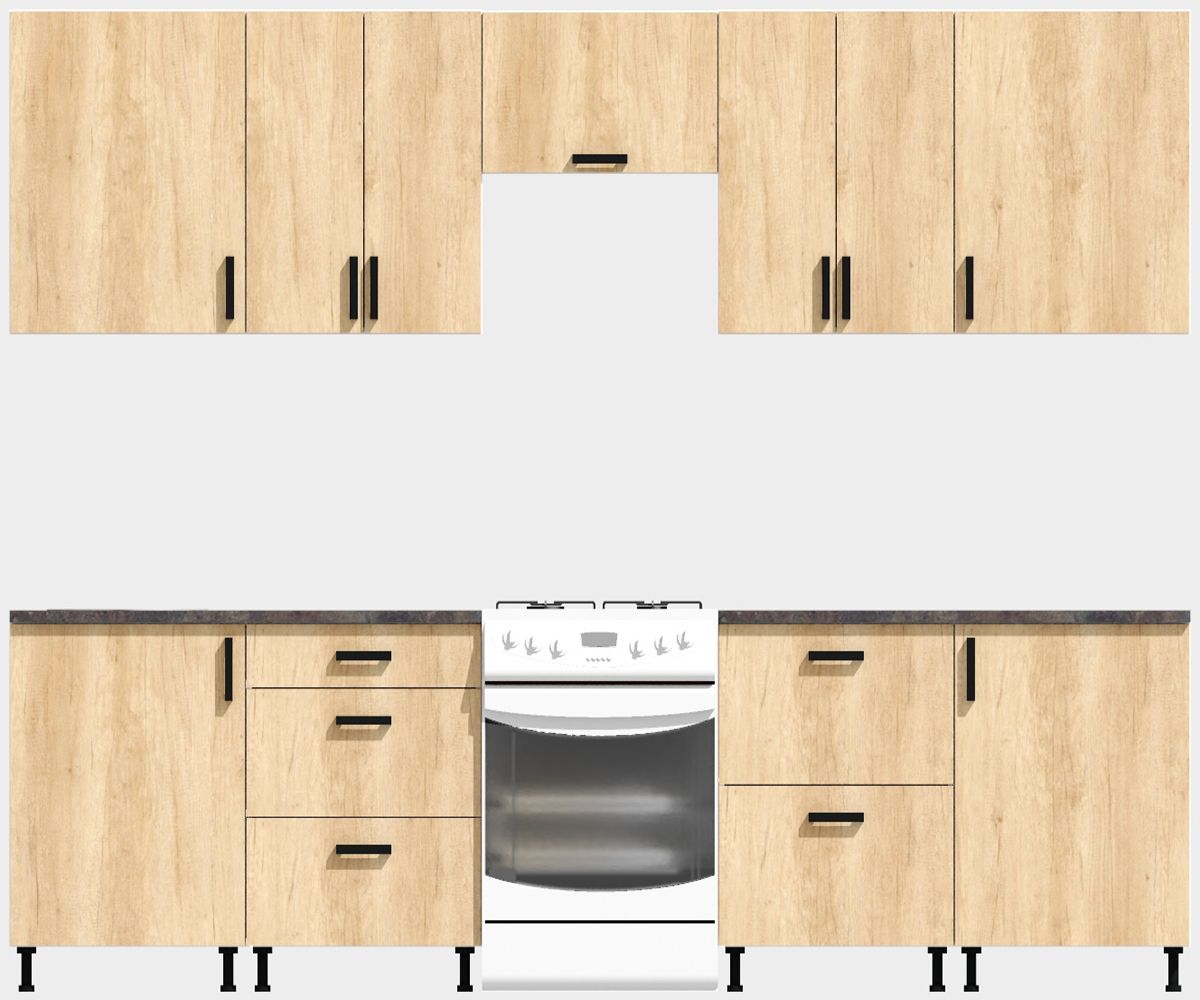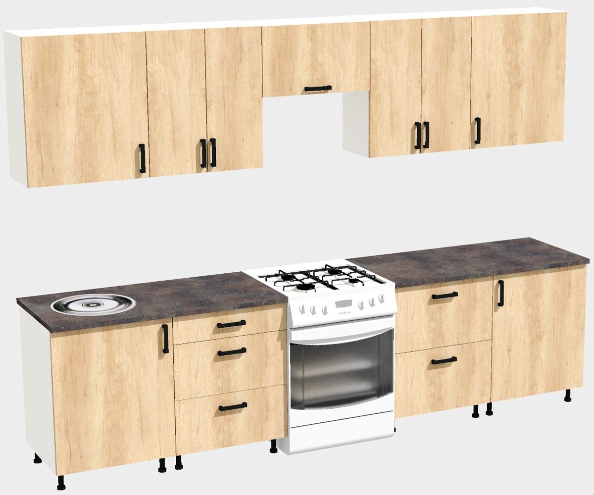 КорпусЛДСП 16 мм. Цвет БелыйФасадыЛДСПЦвет верхних фасадовДуб сономаЦвет нижних фасадовДуб СономаРучкиЧерныеТолщина столешницы26 мм.ПетлиБез доводчиковНаправляющие ящиковШариковые без доводчиковЦвет столешницыЧерный камень