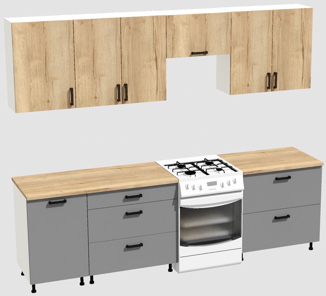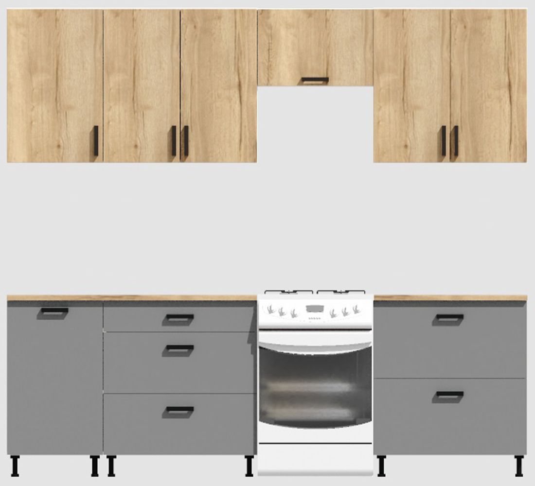 Кухня Эконом 2,1 метра (1300х800) Цвет: Дуб Вотан/Базальт