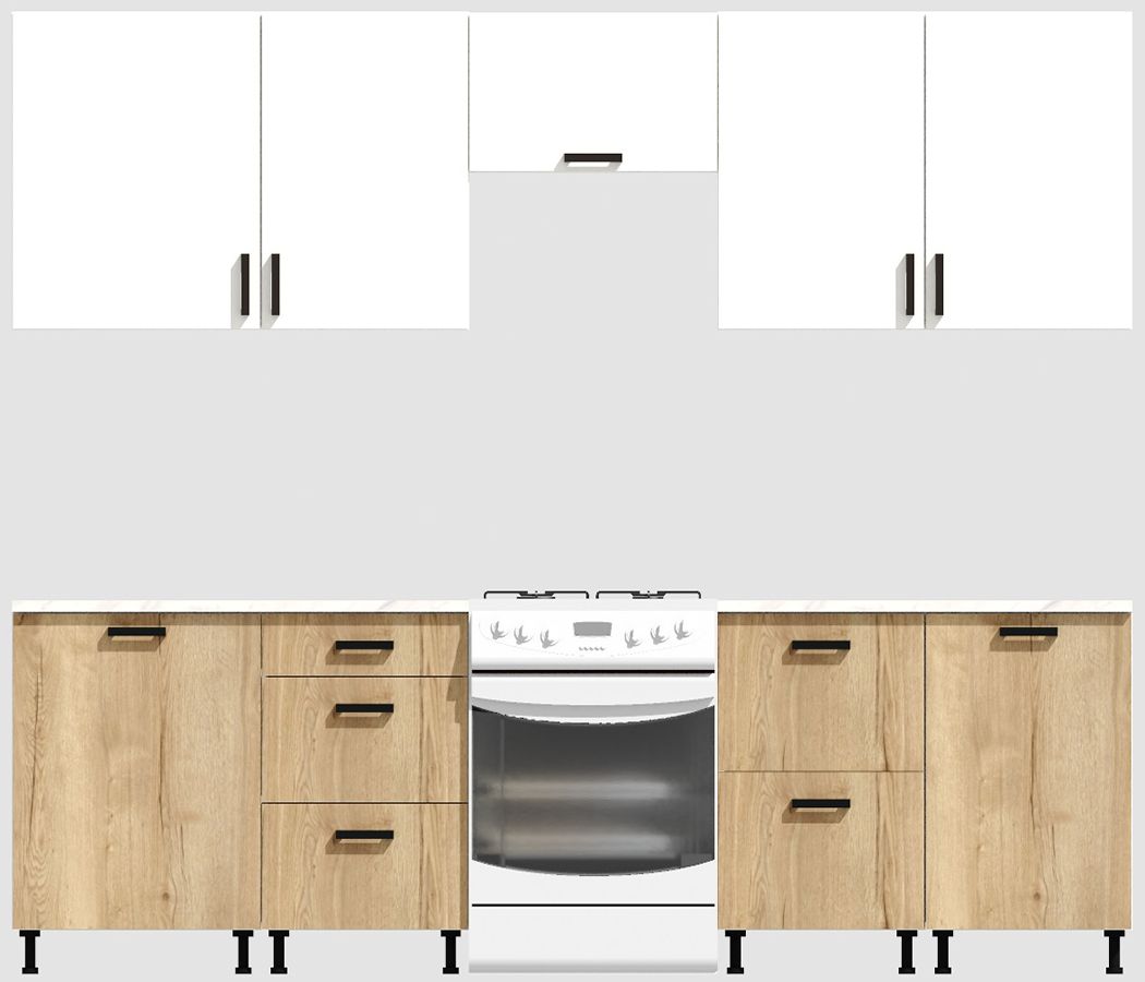 Кухня Эконом 2,1 метра (600х450х600х450) Цвет: Белый/Дуб Вотан