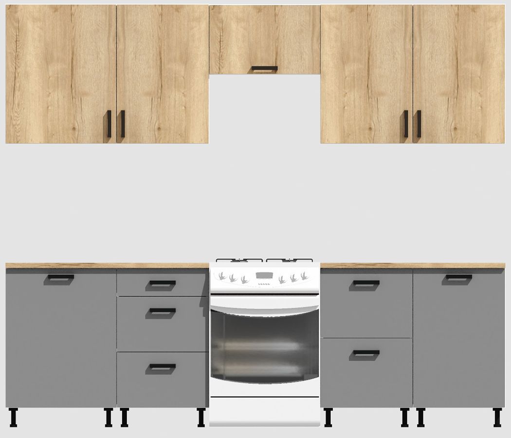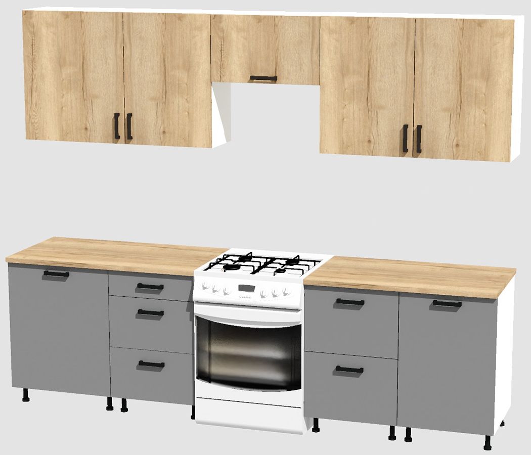 Кухня Эконом 2,1 метра (600х450х600х450) Цвет: Дуб Вотан/Базальт
