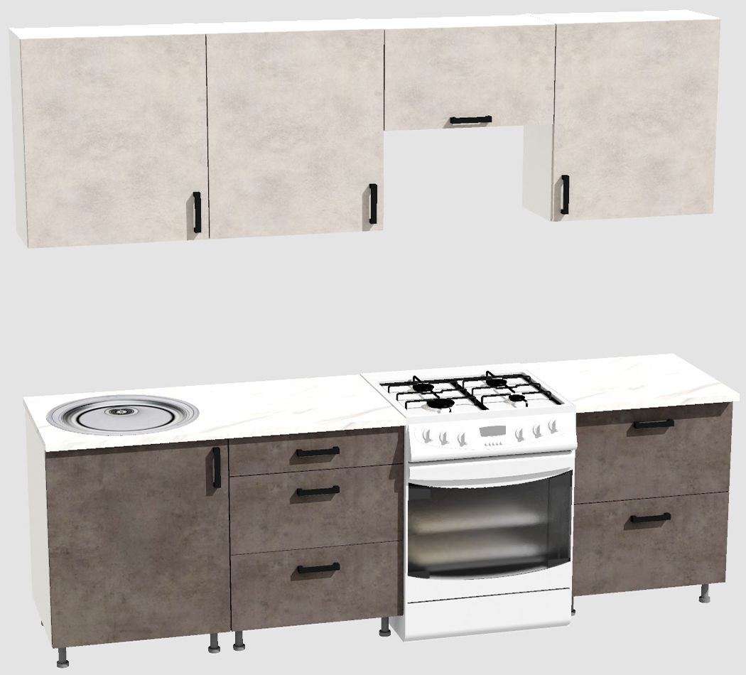 Кухня Эконом 1,8 метра (600х600х600) Цвет: Цемент светлый/Цемент темный