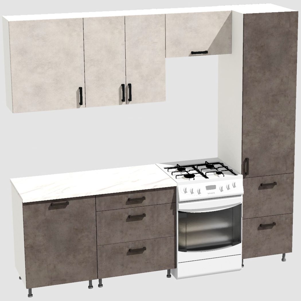 Кухня Эконом 1,8 метра с колонкой (1300х500) Цвет: Цемент светлый/Цемент темный