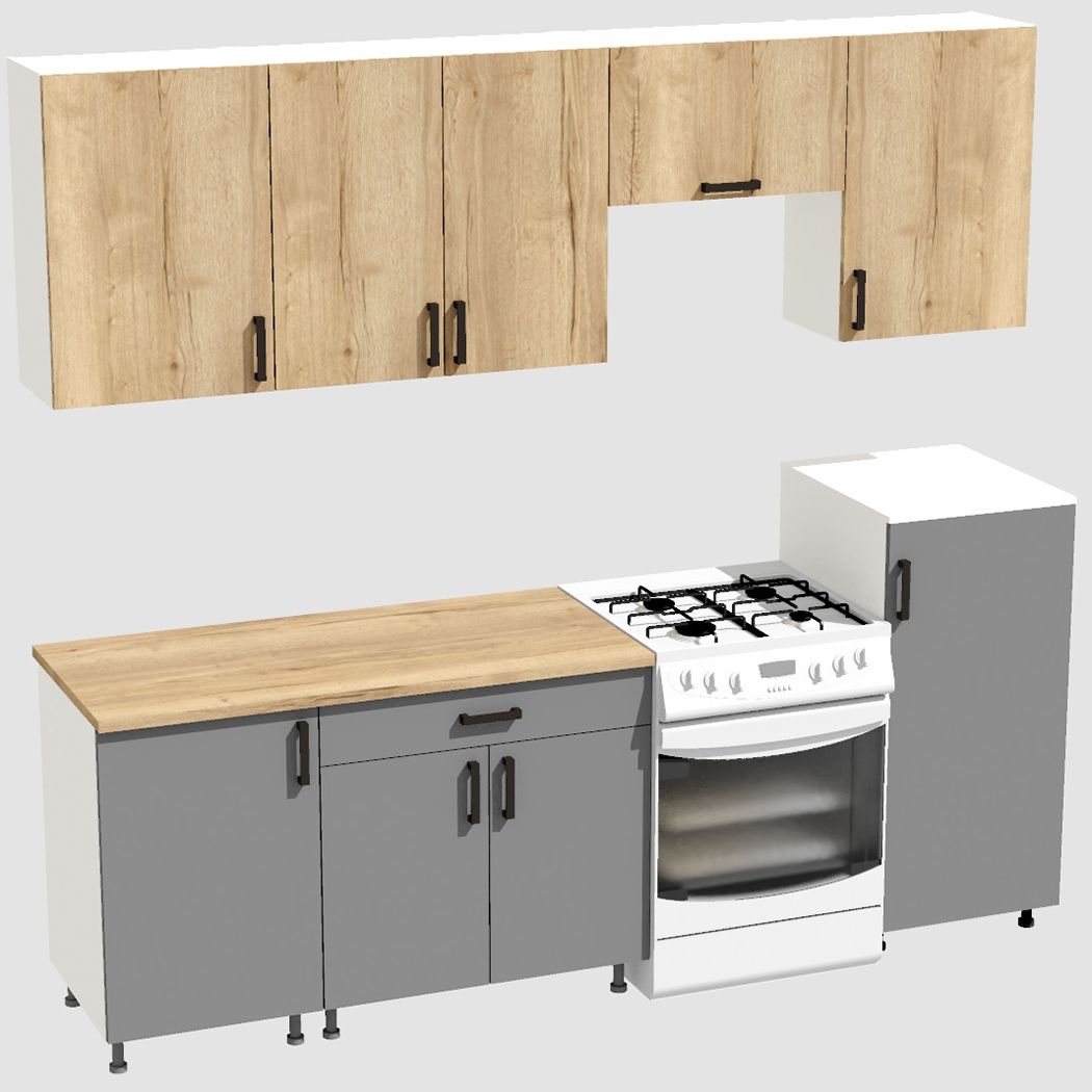 Кухня Эконом 1,8 метра с полуколонкой (1300х500) Цвет: Дуб Вотан/Базальт